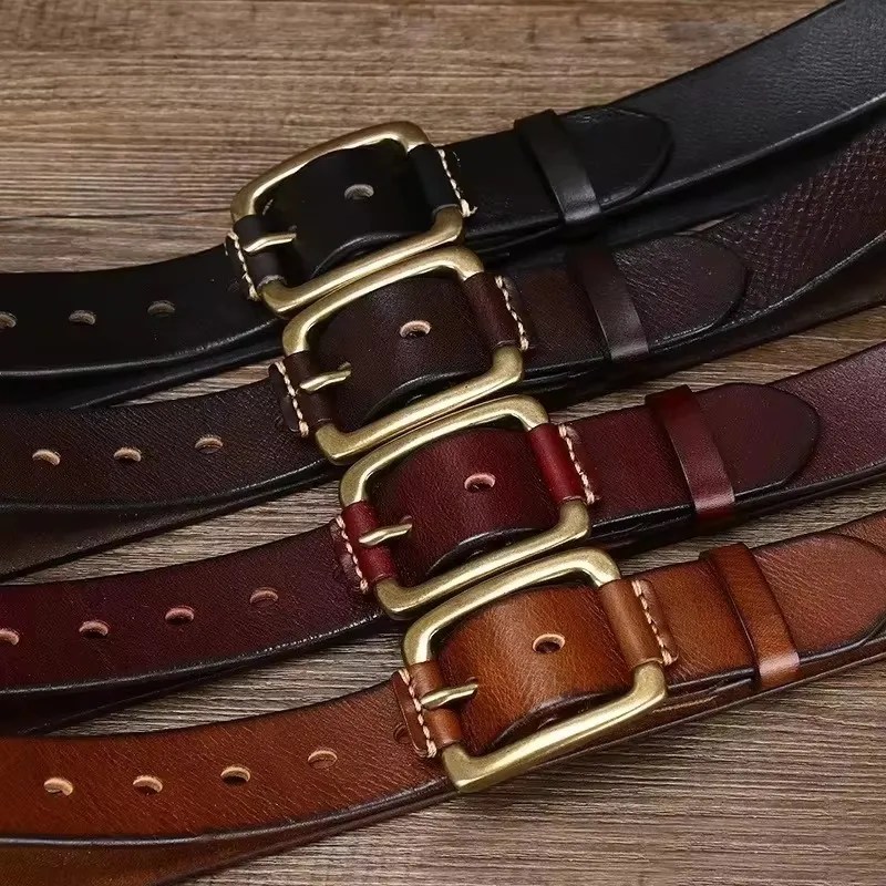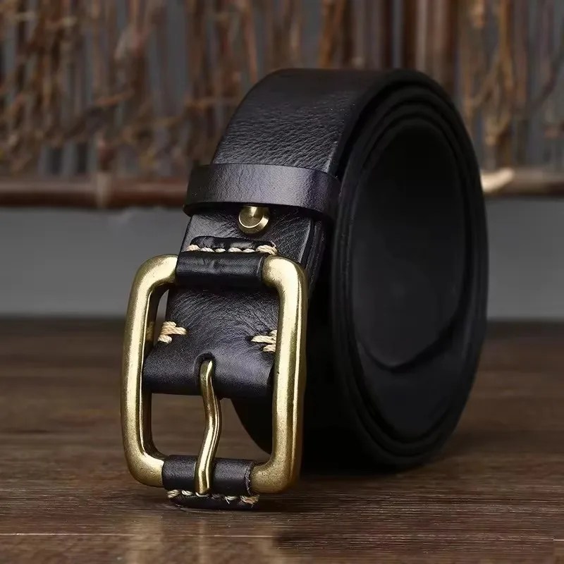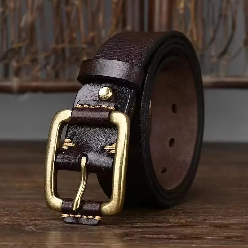 TrueCraft™ 3.8cm Natural Cowskin Leather Belt for Men – Quality Copper Buckle Jeans Belt