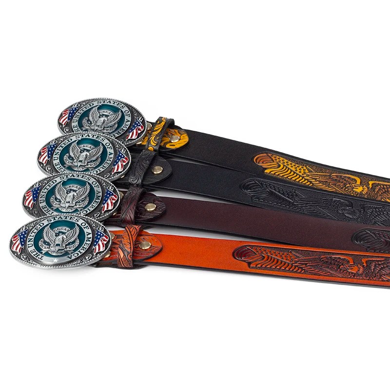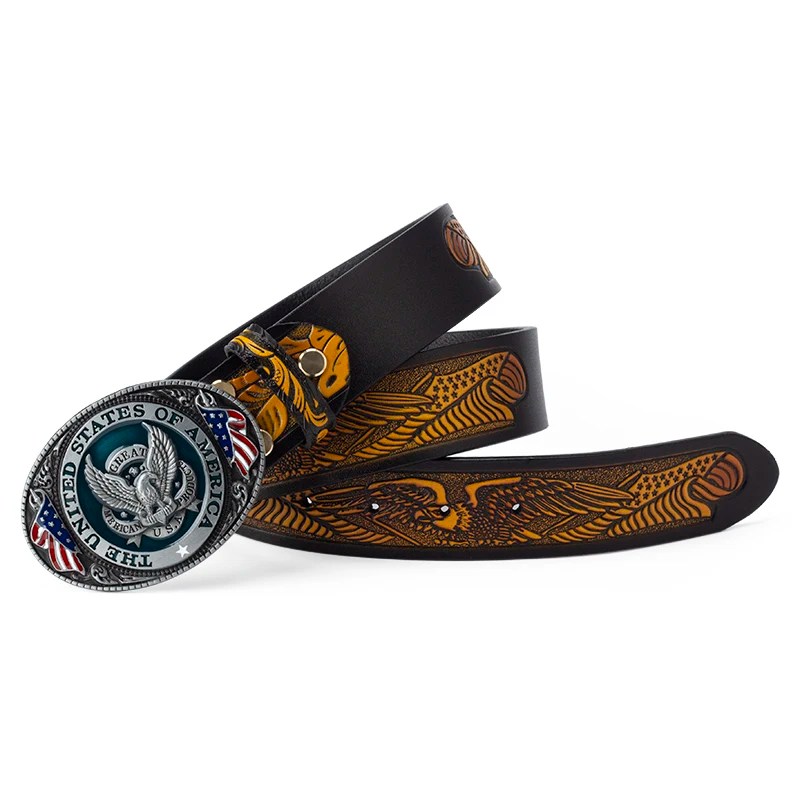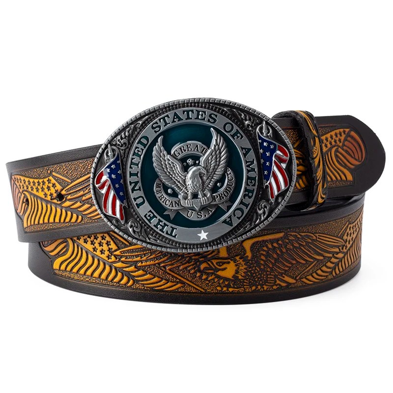American Flag Eagle Buckle Leather Belt – Casual Genuine Leather Belt for Men & Women