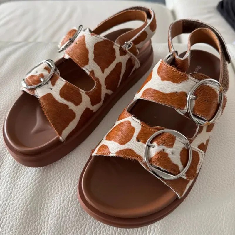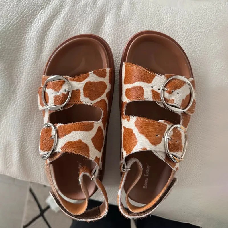Savanna™ Horseskin Platform Sandals – Women’s Handmade Animal Print Buckle Strap Sandals