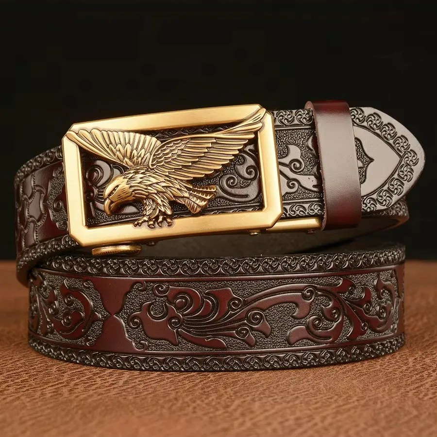 Shop EAGLEVANT™ men’s Automatic Eagle Buckle Leather Belt. 3.5CM genuine split leather strap for business, fashion, and everyday wear. Strength meets elegance. Eagle Pattern Belt