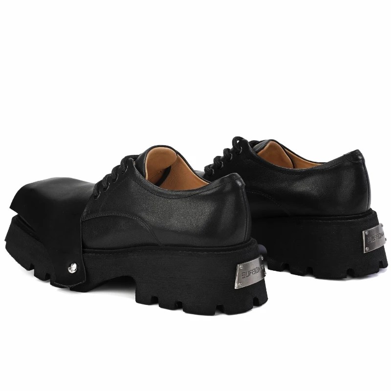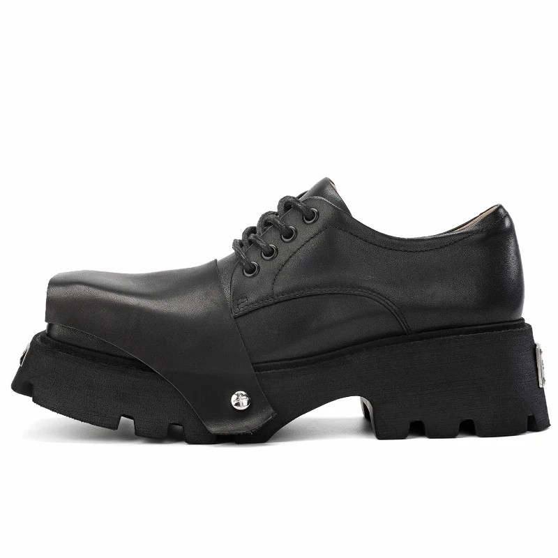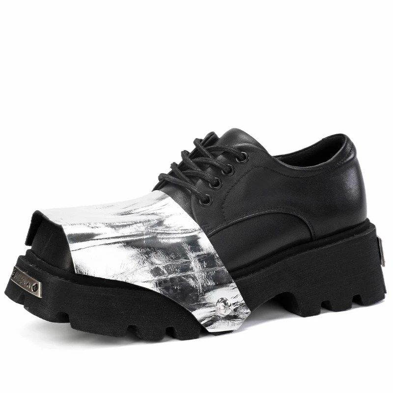 British Original Black Silver Derby Shoes – Genuine Leather Thick Sole Casual Dress Shoes