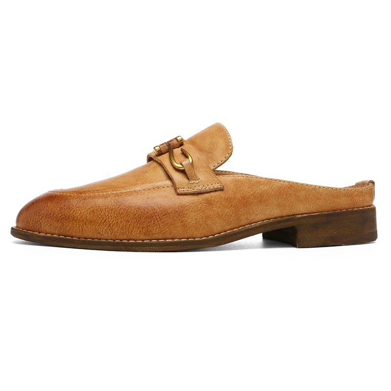These Goodyear-welted slip-on mules are meticulously handmade from full-grain calf leather, offering a perfect balance between luxury and durability. Designed for both men and women, the sleek backless profile and minimal buckle detail give a relaxed yet refined presence. Built for outdoor versatility, they feature a genuine leather lining and insole for breathability and comfort in warmer weather.