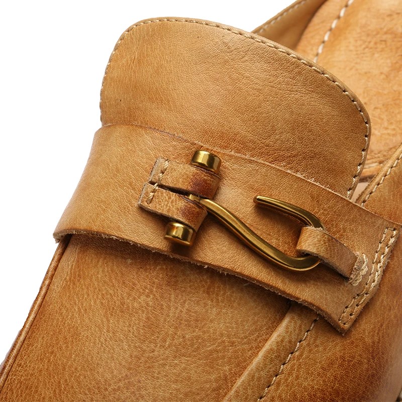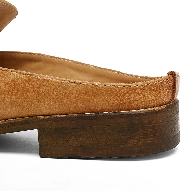 Shop Cadenzio™ Goodyear-Welted Unisex Leather Mule Slippers in full-grain calf leather. Unisex outdoor slip-ons with genuine leather lining and minimalist buckle design. unisex leather mule slippers, Goodyear loafers for men and women, outdoor leather slip-ons
