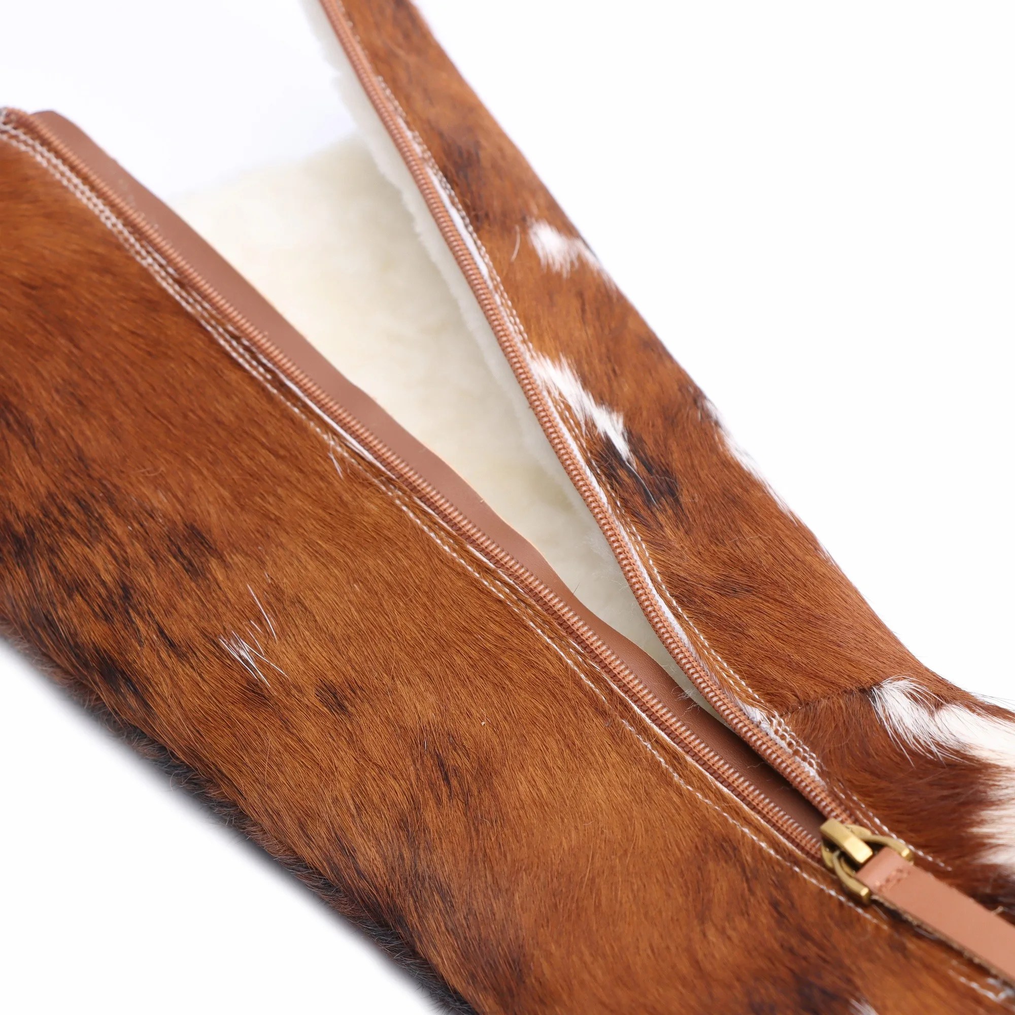 women’s winter boots, calf hair knee-high boots, handmade wool lined boots, luxury studded leather boots, winter platform clogs, designer tall fur boots