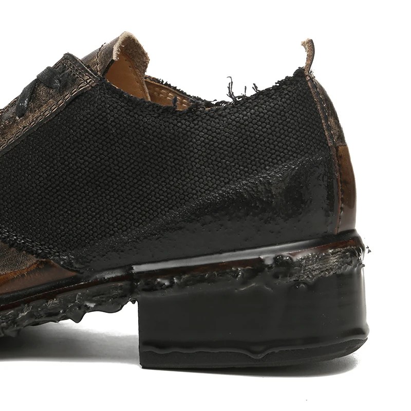 Retro Calf Leather Galosh Derby Shoes for Men – Handmade Goodyear Galosh Dress Shoes Size 46