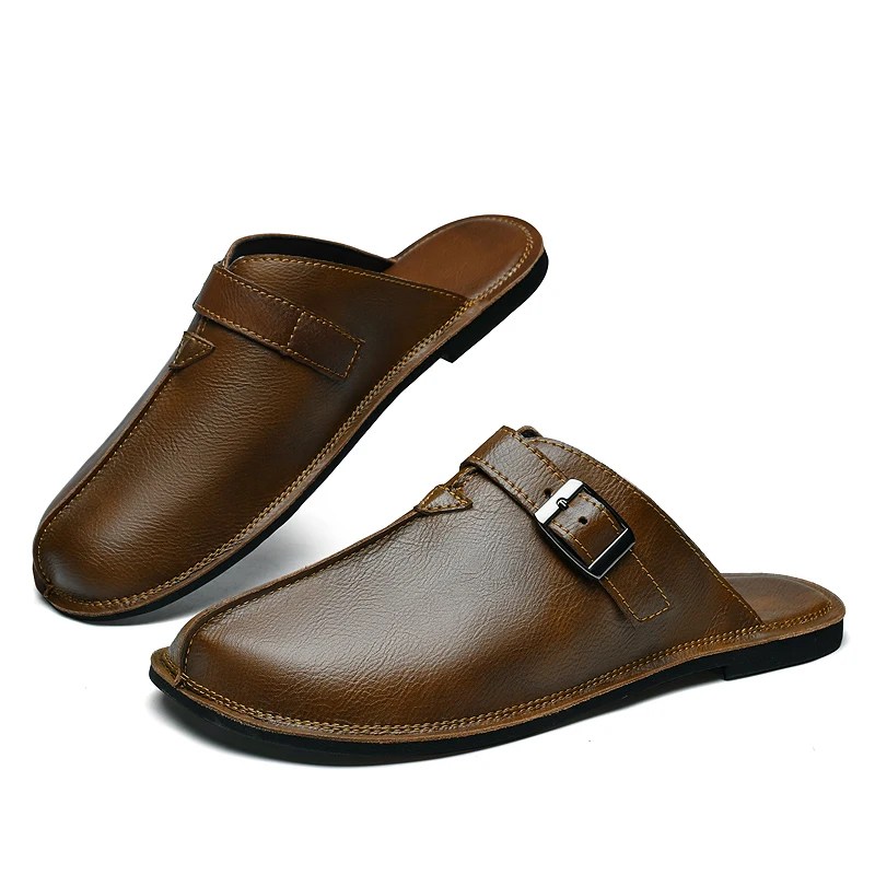 Classic Men’s Leather Summer Slippers – Lightweight Outdoor Half-Drag Sandals