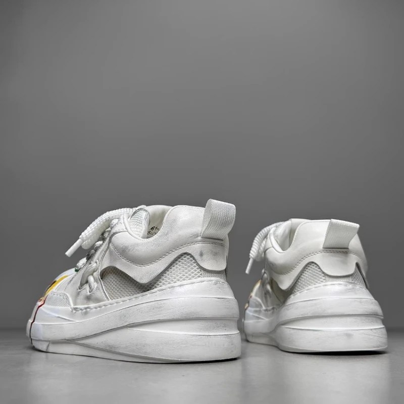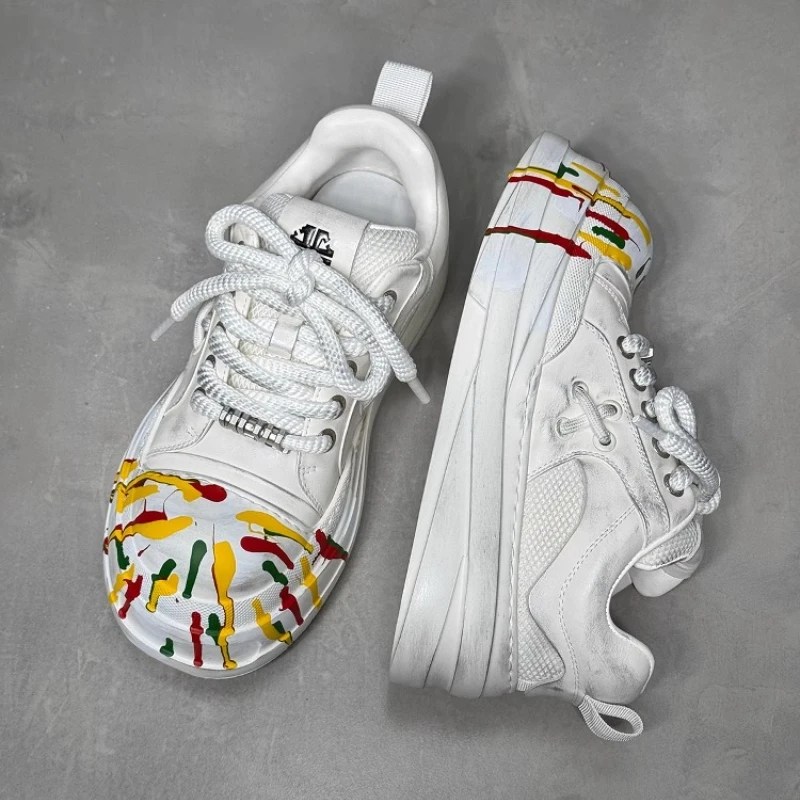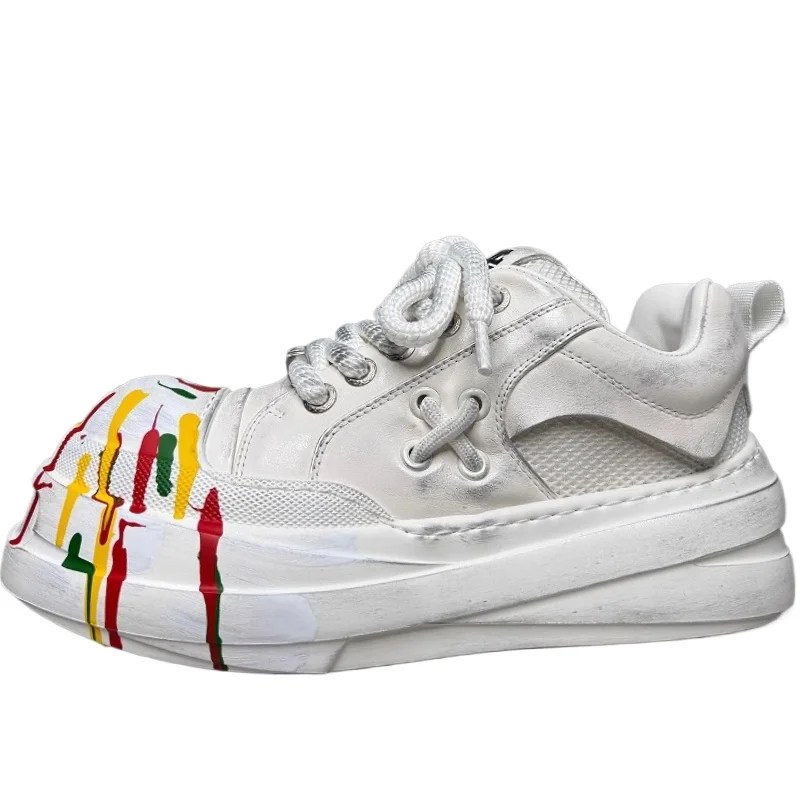 The breathable sheepskin lining and full-grain leather insole provide softness and lasting comfort, while the thick sponge cake EVA styrofoam sole delivers lightweight cushioning and a subtle 3–5cm height boost. With a durable lace-up closure, round toe design, and vibrant mixed-color finish, these sneakers are perfect for sports, leisure, and daily wear.