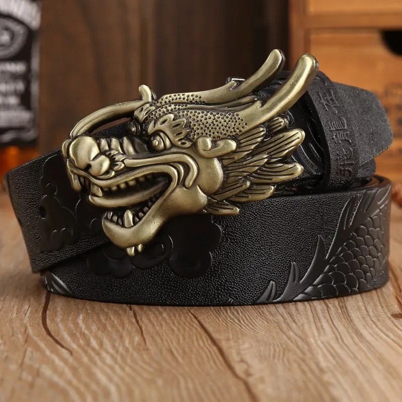 Shop DRAGONEMPIRE™ luxury Designer Dragon Buckle Belt for Men. 3.8CM wide genuine leather strap with bold gold dragon buckle. Perfect for jeans and fashion-forward streetwear.