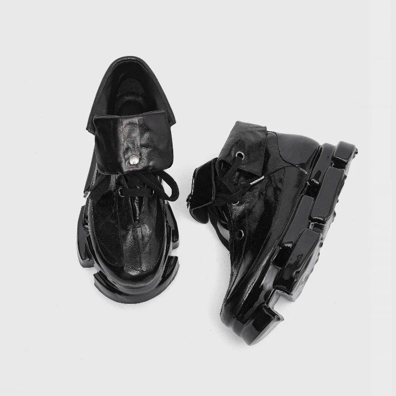 Featuring a thick EVA outsole with drip-glue detailing, these shoes create a striking “performance-ready” look fit for red carpet moments, catwalk appearances, and elevated street style. Inside, a genuine leather lining and full-grain leather insole provide breathable comfort, while the 3–5cm thick sole discreetly boosts height.