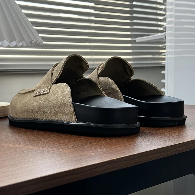 Men suede mule slippers, casual indoor outdoor flats, handmade suede shoes men, breathable walking slippers, cow suede loafers, spring autumn men’s casual shoes