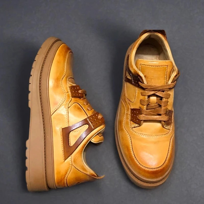 Step into timeless English-inspired craftsmanship with the England Retro™ Washing Cowhide Board Shoes. Handmade from premium washed cowhide leather, these casual sports shoes fuse vintage style with modern comfort. Built with Goodyear welt construction for durability, they feature breathable genuine leather lining, shock-absorbing rubber soles, and a thick-bottom design for long-lasting wear. Designed for men who appreciate retro charm with everyday function, they’re perfect for sports, leisure, or city strolls.
