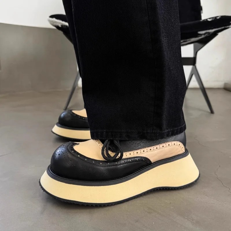 men’s derby shoes, wide fit leather shoes, height increasing derby shoes, European American style derby, genuine leather casual shoes, thick bottom derby sneakers, UNITYPUREMAX men’s shoes, Brock carving leather shoes