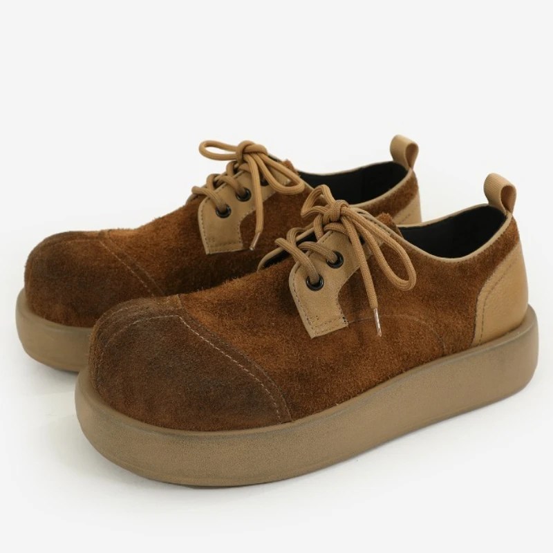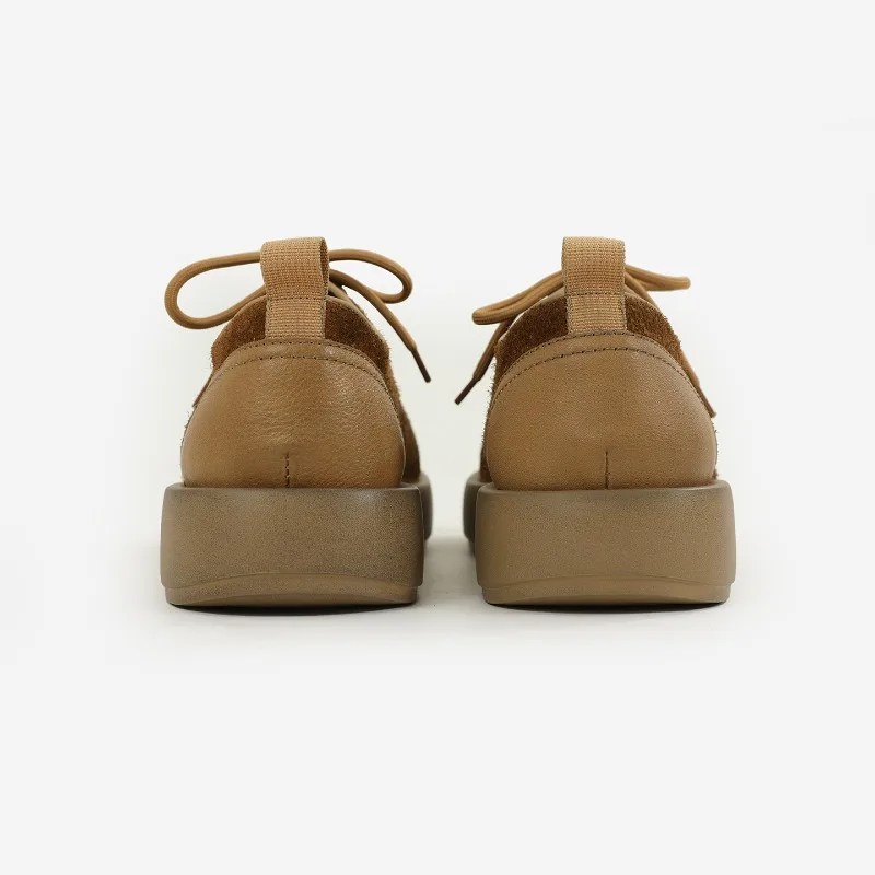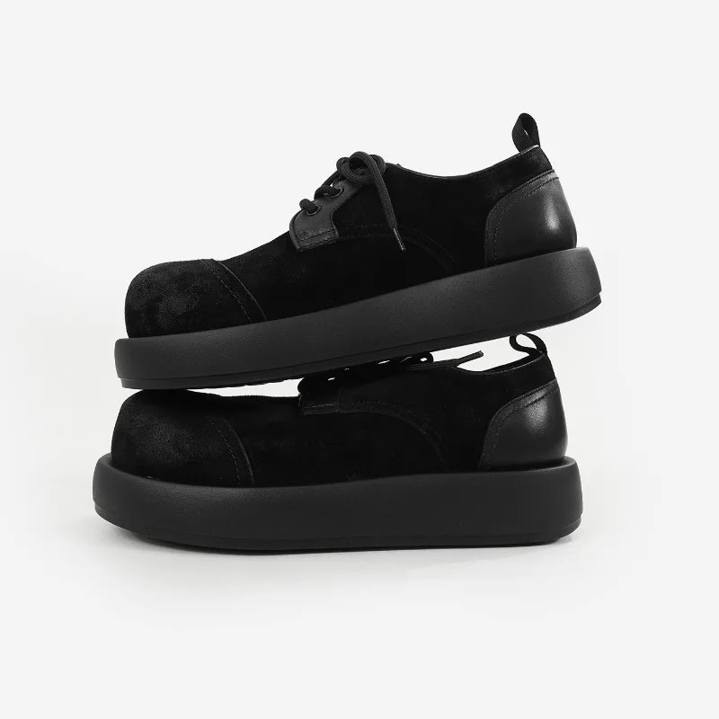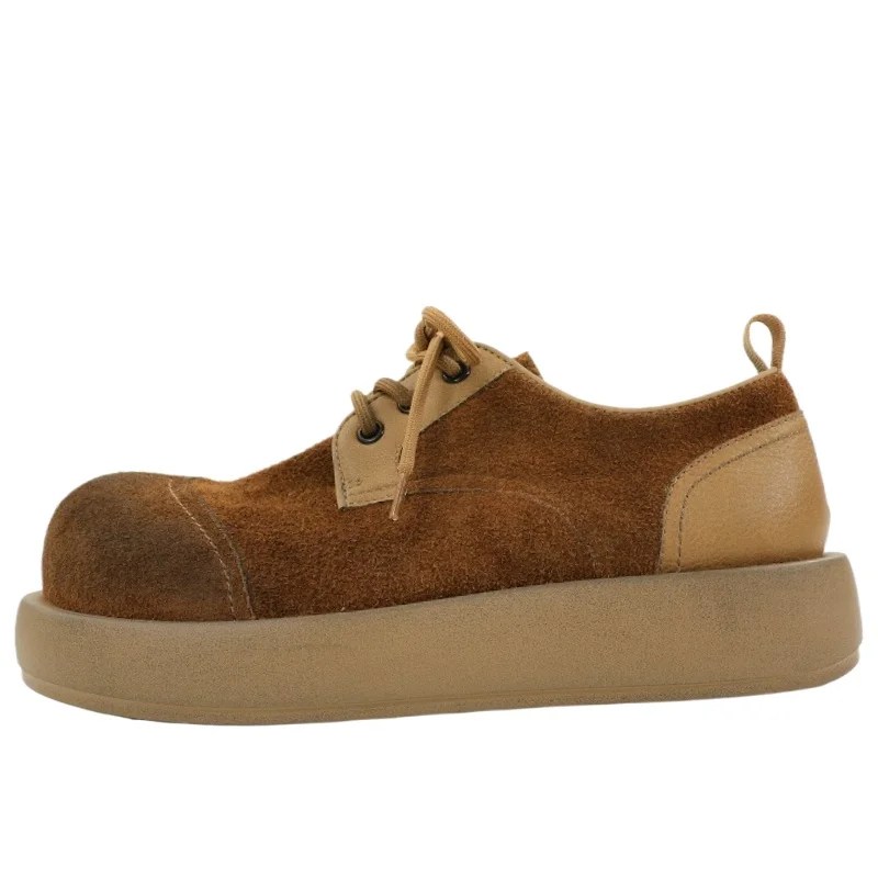 Made from top-layer cow suede, the upper feels velvety and natural — maturing beautifully with time. The distinctive big-toe round forefoot design offers generous comfort and relaxed sophistication, while the lightweight thick sole delivers a cushioned stride and subtle height enhancement.