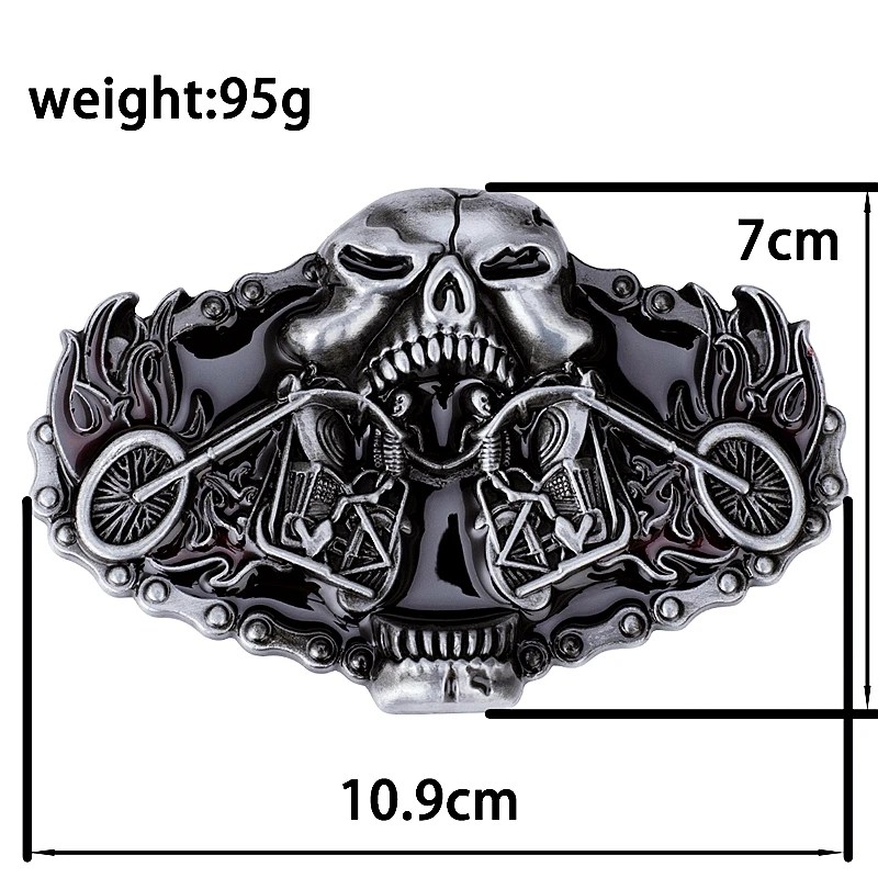 Heavy full-metal zinc alloy buckle featuring a sculpted fire skull design.