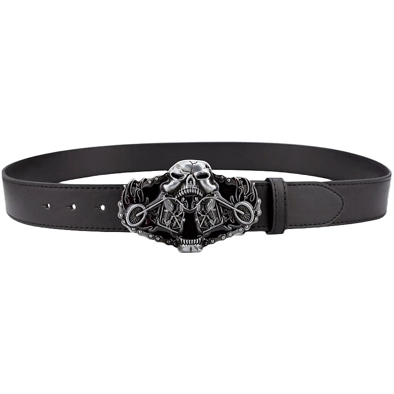 Men’s Fire Skull Motorcycle Belt | Heavy Metal Rider Buckle & PU Leather Strap | UNITYPUREMAX™