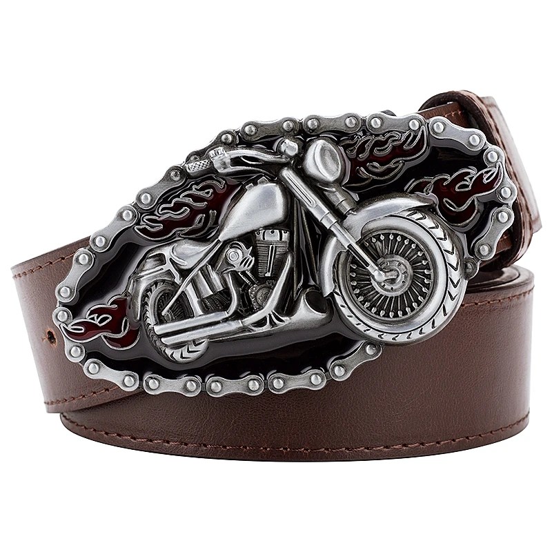 Motorcycle-inspired metal styling suited for cruisers, riders, and bold casual looks.