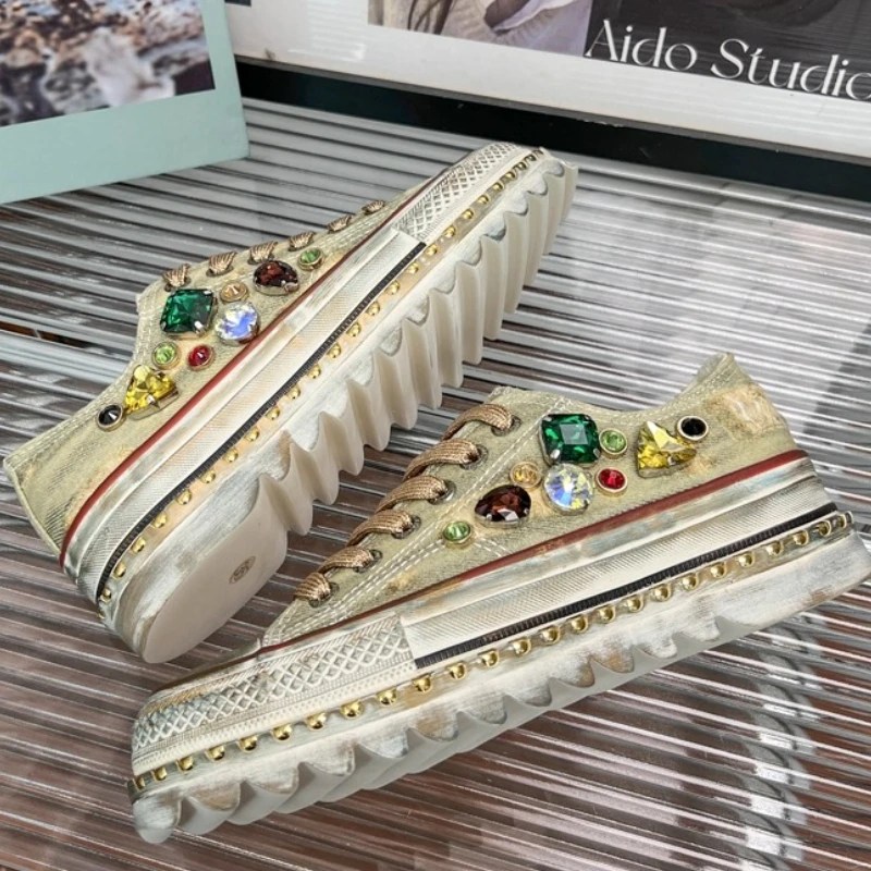 UNITYPUREMAX™ Gradient Gemstone Retro Washed Canvas Shoes for Women – Comfortable & Breathable Dirty Board Sneakers