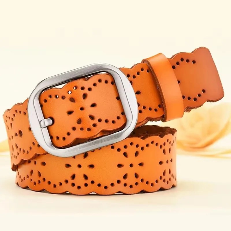 Shop VeraLuxe™ 3.8CM women’s hollow-out leather belt. Crafted from genuine split cowhide with elegant cutout design. Perfect for jeans, tunics, and dresses.