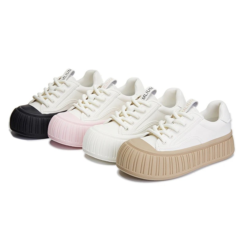 A: Absolutely. The 3–5 cm platform, combined with a round‑heeled profile, distributes pressure evenly across your foot. The PU insole further cushions each step, making these Lace‑Up Sneakers ideal for all‑day wear.