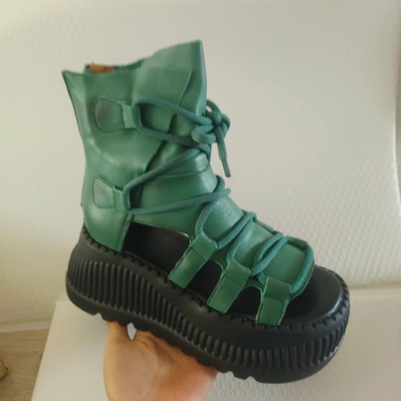 Discover SkyWedge Ethno™ Genuine Cow Leather Peep-Toe Wedge Booties – handcrafted women’s ankle booties made from genuine cow leather. Featuring a breathable peep-toe, 8cm wedge heel, and ethnic zip design—perfect for summer style.