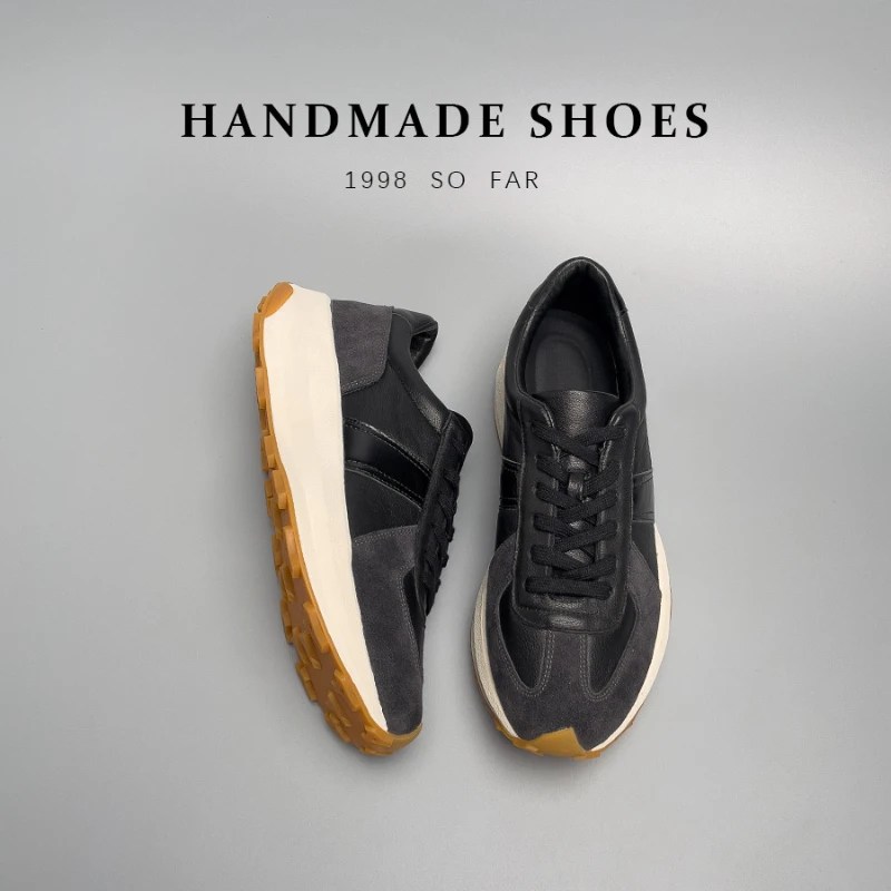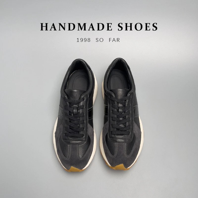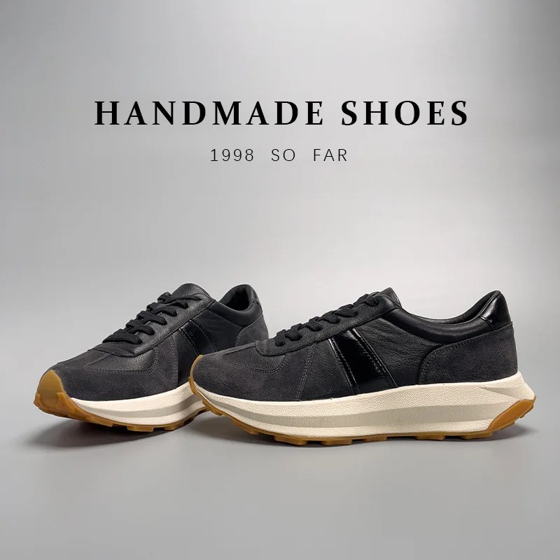 Designed with classic athletic inspiration and refined through minimalist craftsmanship, these men’s black leather casual shoes deliver everyday comfort with timeless appeal. Crafted from genuine cow leather and reinforced with stitch-fixed construction, they balance breathability, durability, and understated retro style. A cork outsole and pigskin insole provide natural cushioning, making them ideal for walking and daily casual wear through spring and autumn.