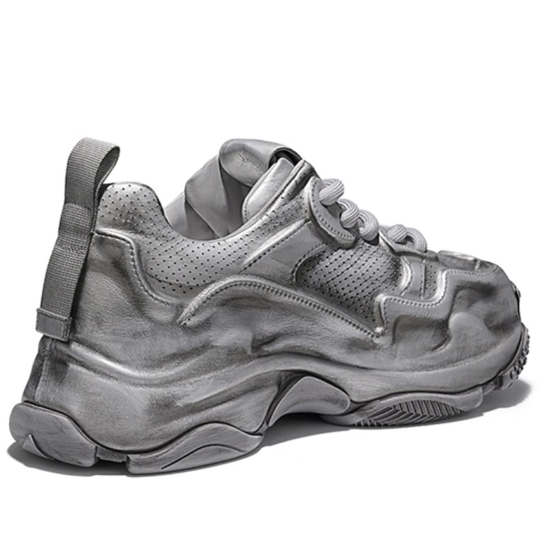 Shop UNITYPUREMAX™ Genuine Leather Thick Bottom Board Shoes. Trendy height-increasing sneakers for men & women with cowhide leather upper, sheepskin lining, and durable thick sole. Perfect casual couple sneakers in black, silver, and white.