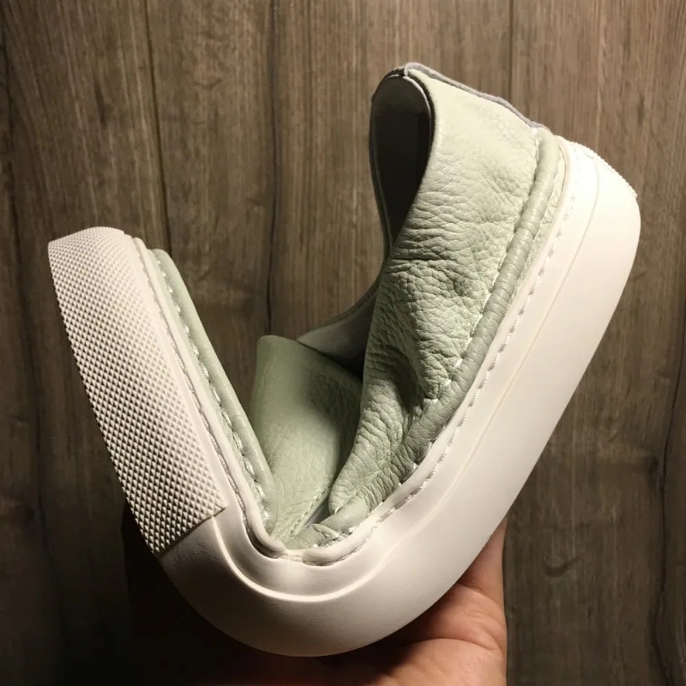 Clean, modern, and effortlessly wearable, these genuine leather white slip-on loafers blend the relaxed ease of sneakers with the refinement of handcrafted leather footwear. Designed with a Korean-inspired minimalist aesthetic, they feature a breathable leather interior, soft pigskin insole, and flexible rubber outsole—making them an ideal choice for summer casual wear and everyday movement.