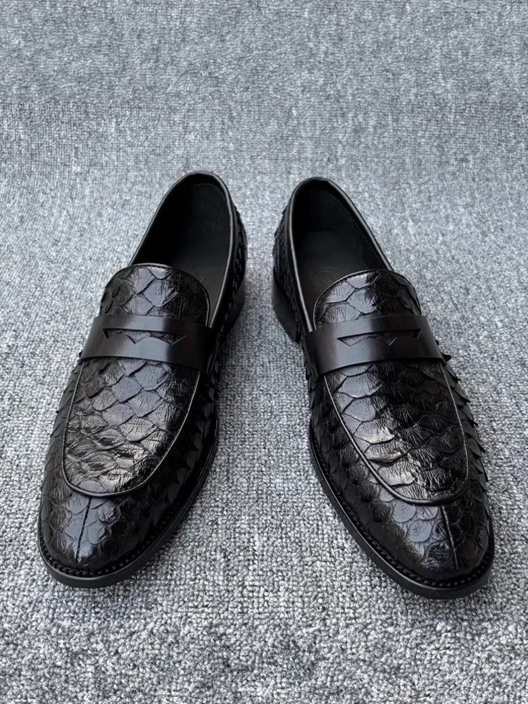 Shop UNITYPUREMAX™ genuine snakeskin loafers for men. Luxury slip-on dress shoes perfect for business, weddings, and formal occasions. Handcrafted elegance.