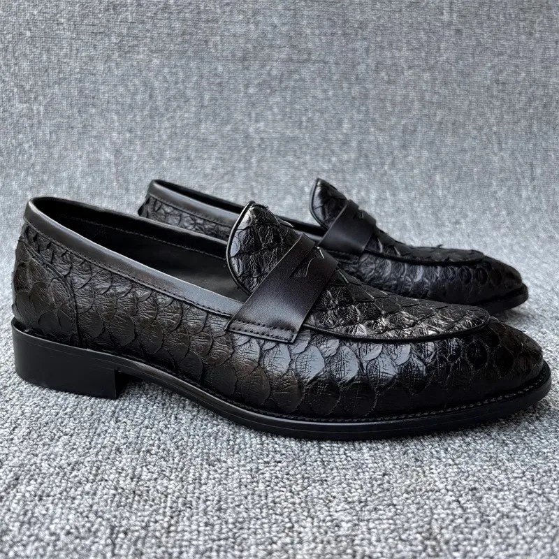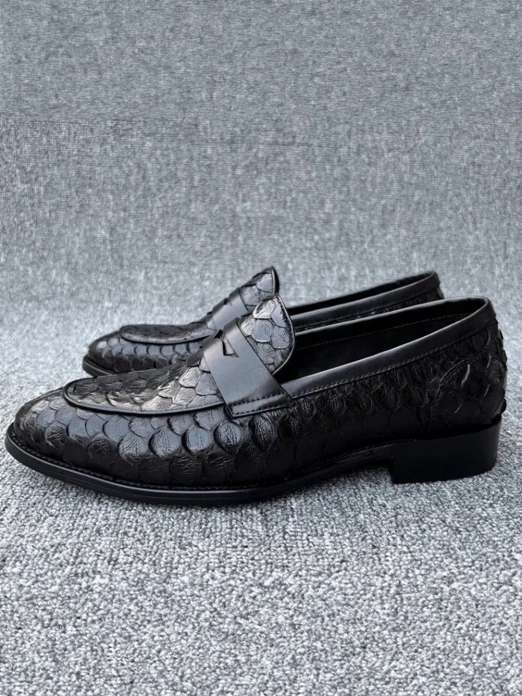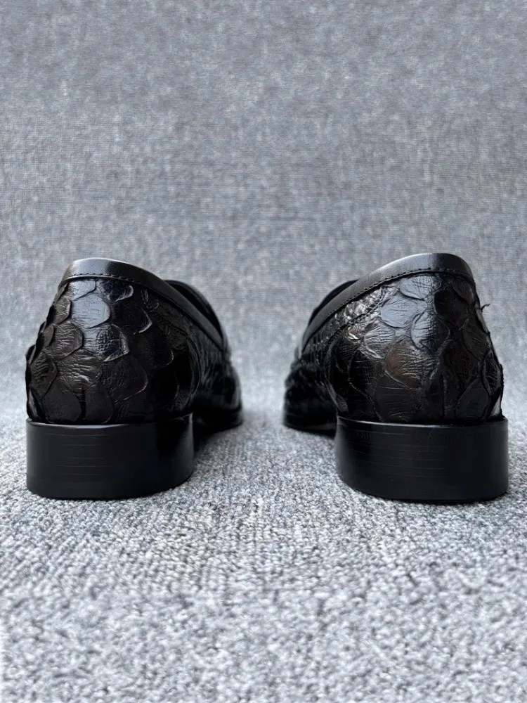 These loafers are not for blending in. They are for commanding attention without excess. Genuine snakeskin offers a level of exclusivity that synthetic finishes cannot replicate each scale reflecting craftsmanship and rarity. The silhouette remains understated, ensuring versatility across office settings, weddings, and formal occasions.