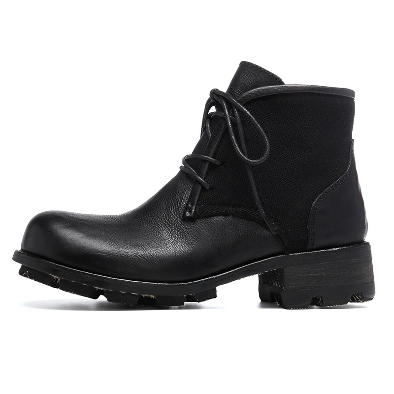 Discover handcrafted leather Goodyear Welted Derby Ankle Boots for men with Goodyear welt construction and a stylish height boost. Cowhide upper, canvas shaft, and round-toe design for spring/autumn fashion.