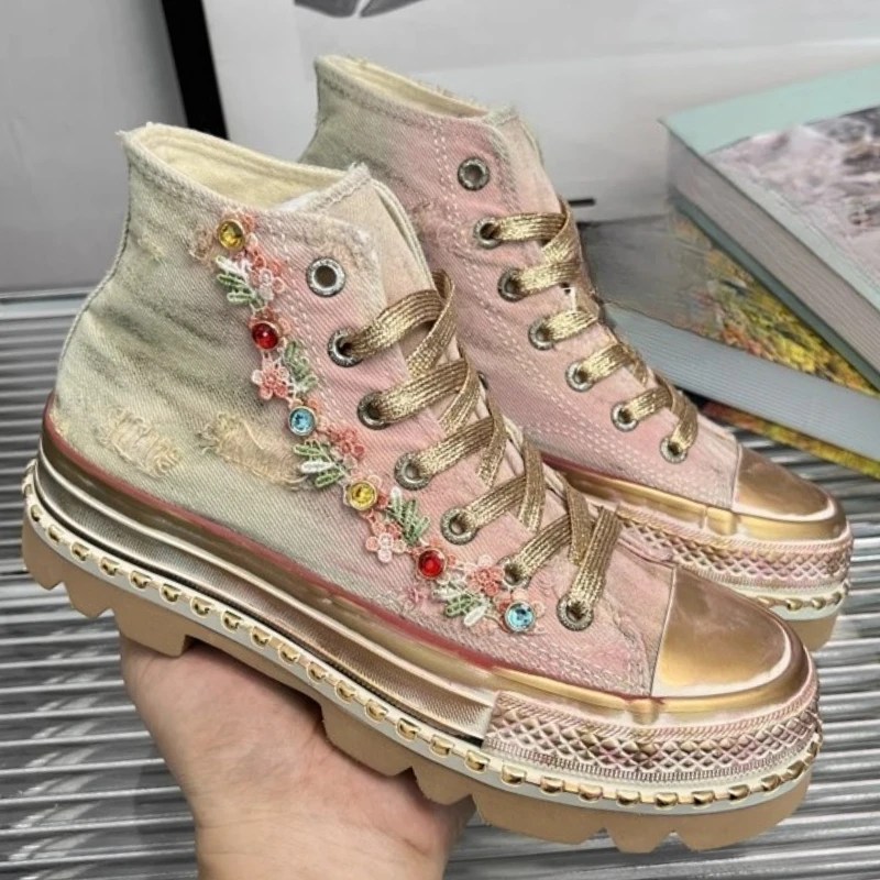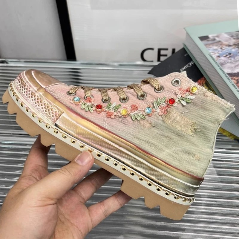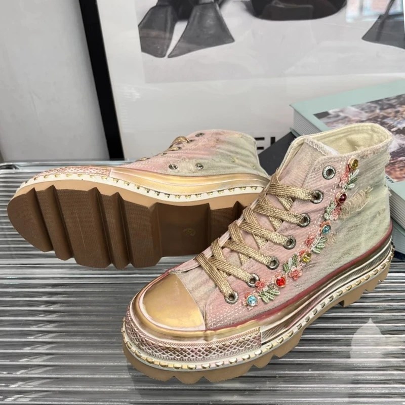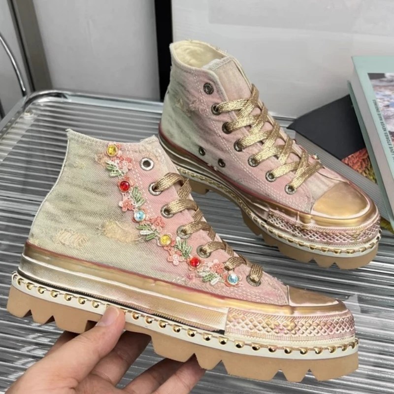 women’s retro canvas shoes, gradual color sneakers, embroidery high-top shoes, UNITYPUREMAX women shoes, thick sole dirty board sneakers, vintage fashion shoes, genuine leather insole sneakers, breathable canvas footwear, street style high-top shoes, handmade gradient sneakers