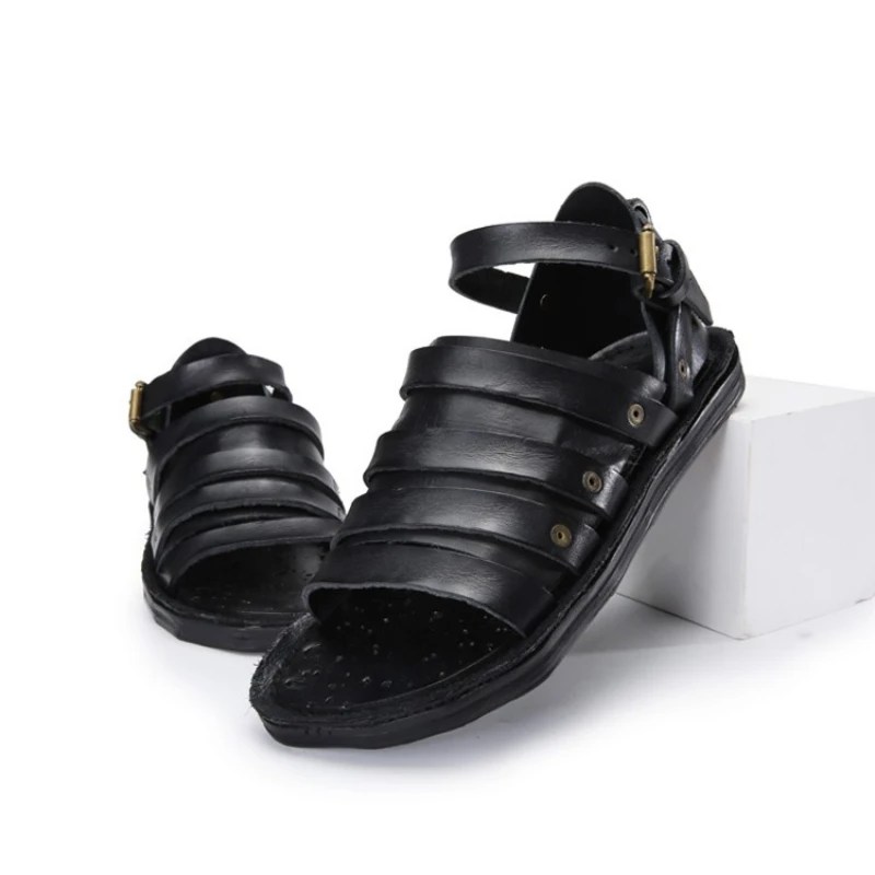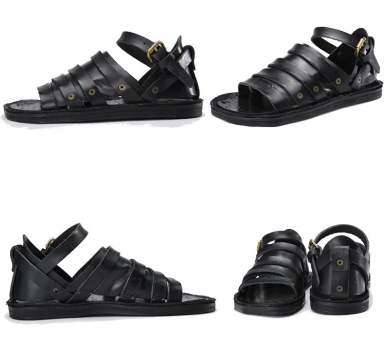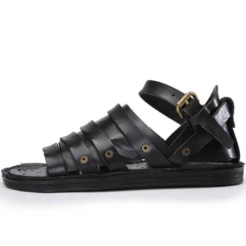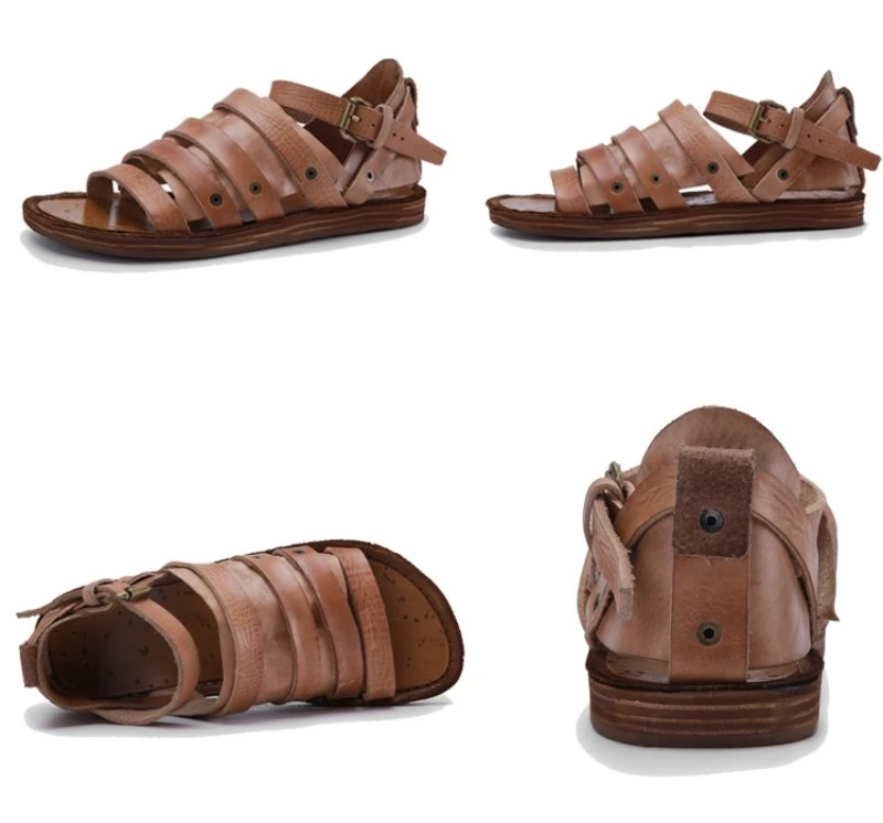 mens handmade cowhide sandals, british gladiator sandals, UNITYPUREMAX leather summer shoes, open-toe vintage leather sandals, breathable casual leather sandals
