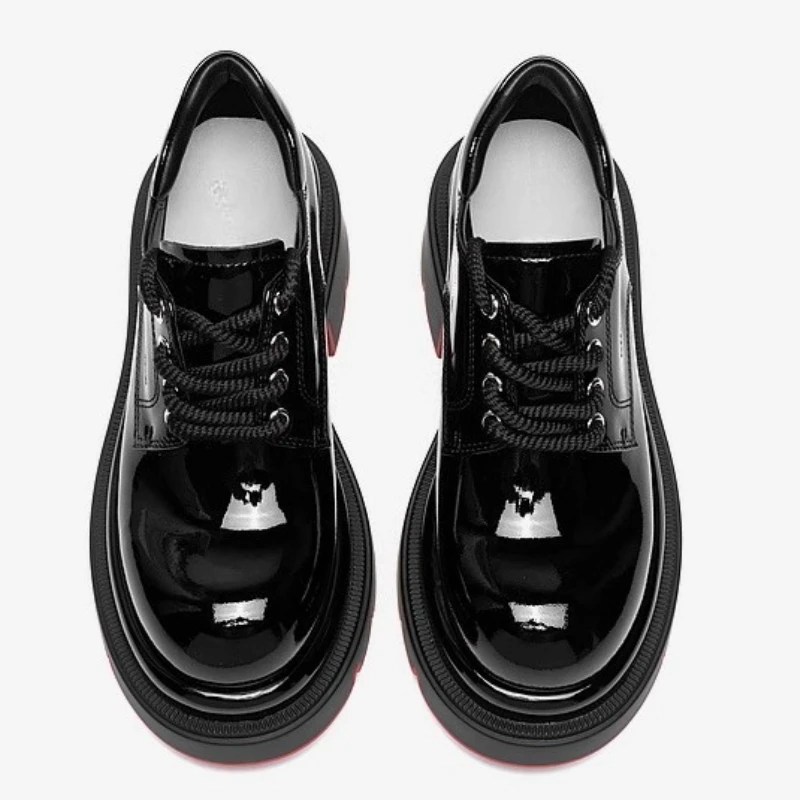 Featuring a 7cm height increase through a comfortable thick platform sole and square block heel, they provide both lift and balance. The soft sheepskin insole and lining ensure all-day breathability, while the lace-up closure delivers a secure, personalized fit. Available in classic black and vibrant red, these shoes redefine the fusion of comfort, craftsmanship, and contemporary edge.