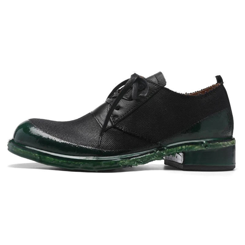 canvas derby shoes, unisex retro oxford shoes, Goodyear welt loafers, cowhide galosh shoes, waterproof leather trim shoes, handmade office shoes, leather and canvas dress shoes