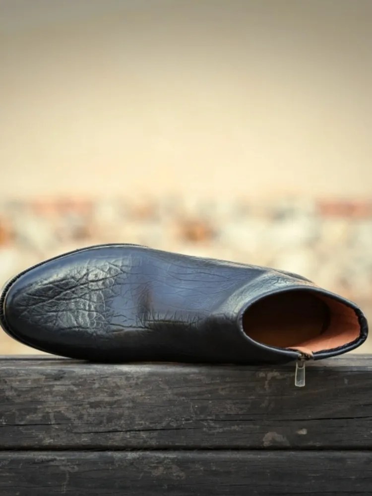 Handmade Genuine Leather Men’s Ankle Boots | Minimal Round-Toe Zipper Boots by UNITYPUREMAX™