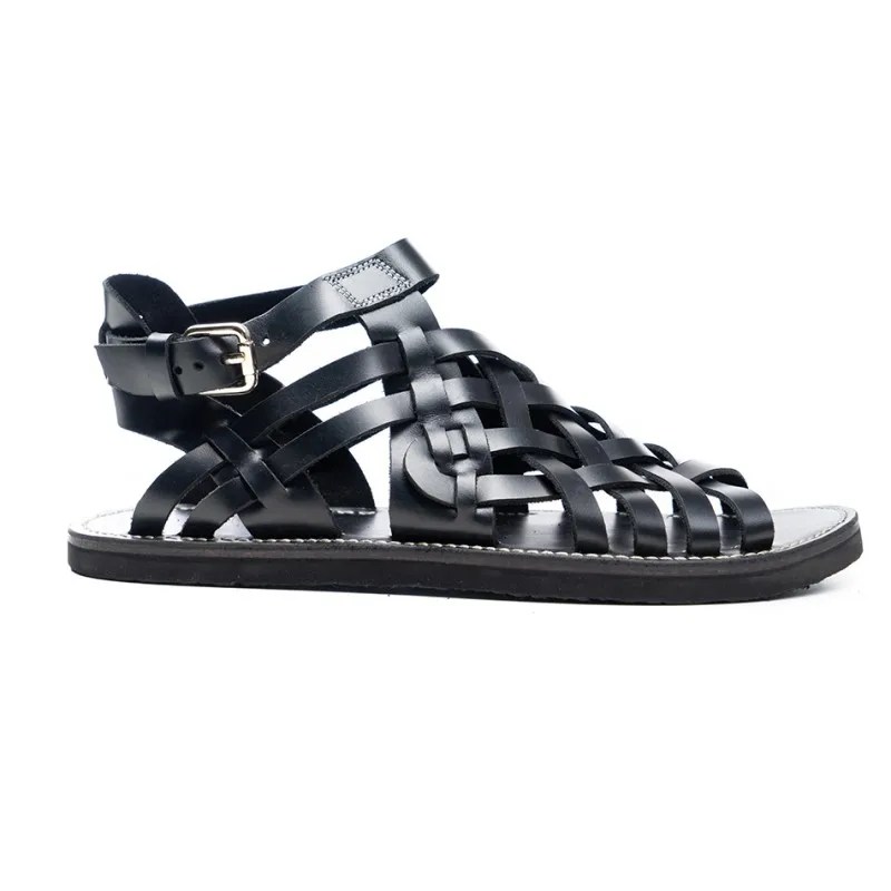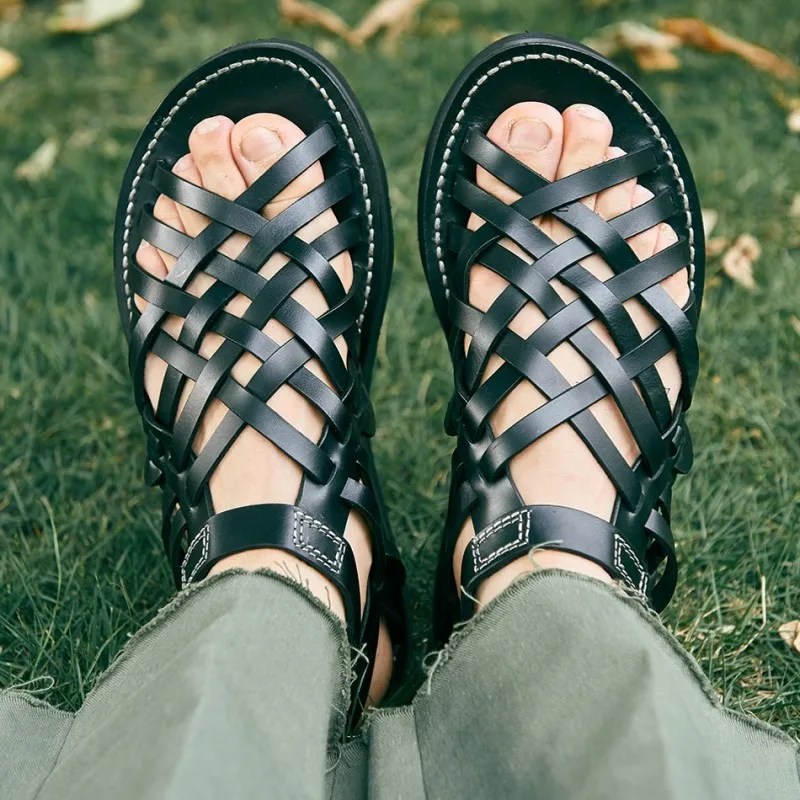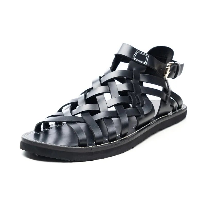 mens handmade cowhide sandals, woven leather gladiator sandals, UNITYPUREMAX summer flats, Italian vintage sandals men, leather open-toe buckle sandals