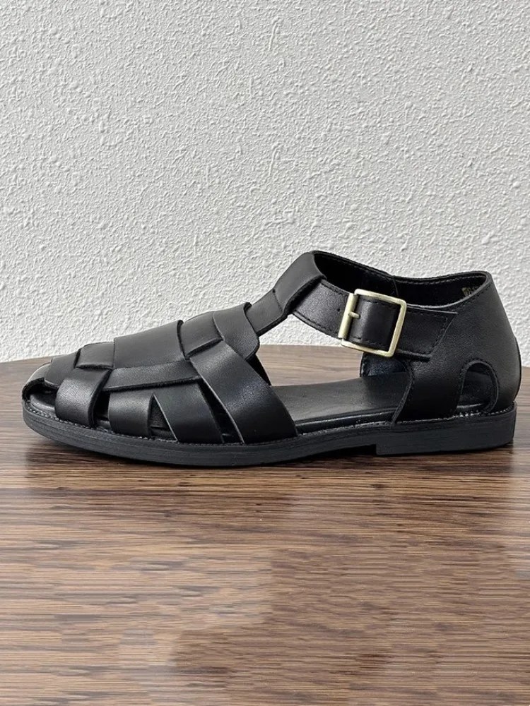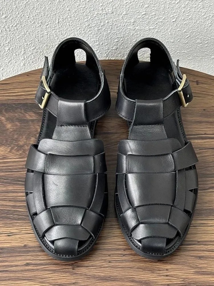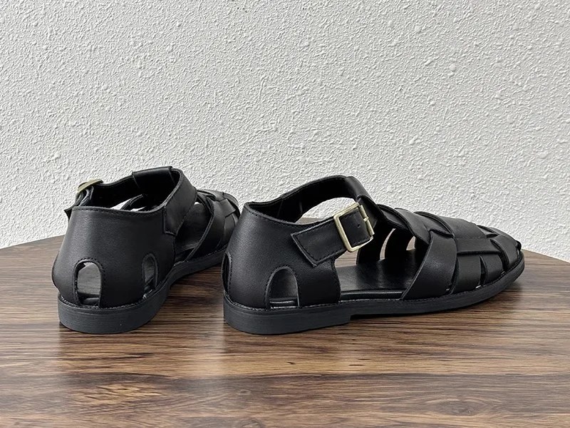 mens woven cowhide sandals, handmade leather gladiator sandals, UNITYPUREMAX summer flats, buckle strap leather sandals men, vintage cowhide summer footwear, breathable gladiator shoes