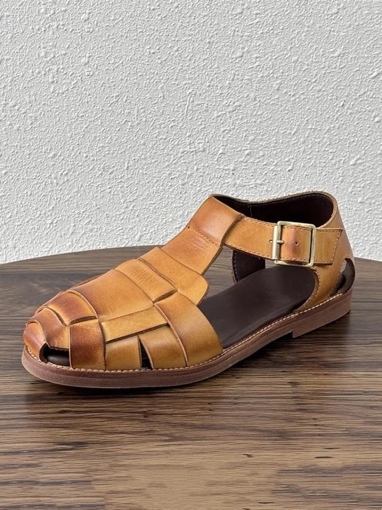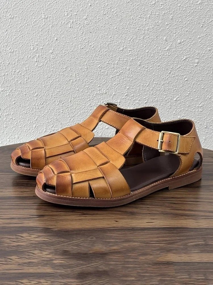 Handwoven texture. Genuine leather craftsmanship. Effortless summer comfort.