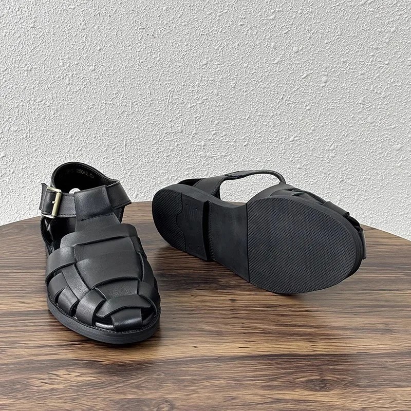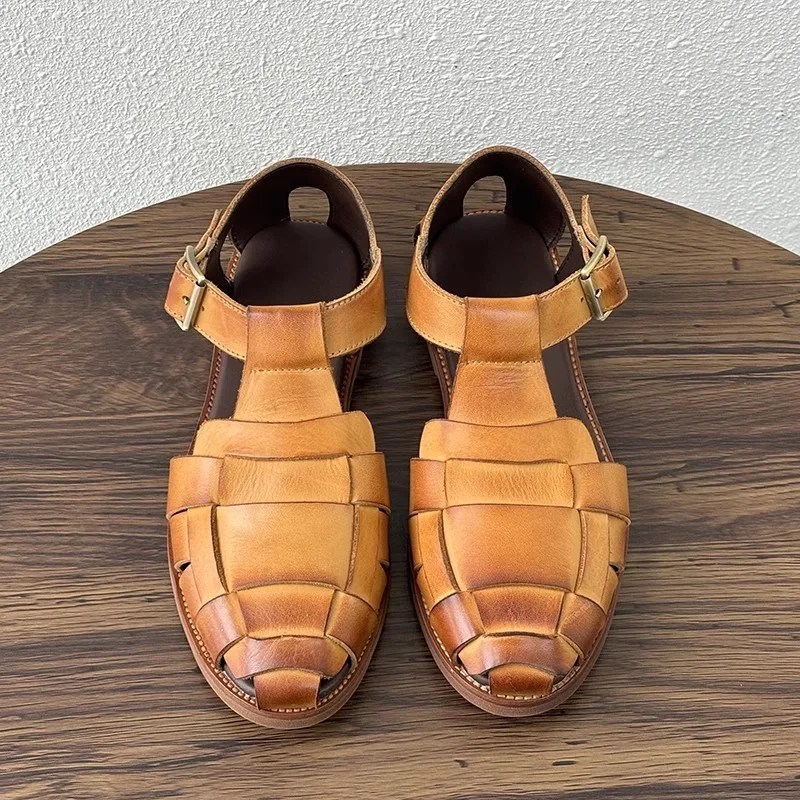 Handmade woven cowhide leather upper with vintage gladiator styling