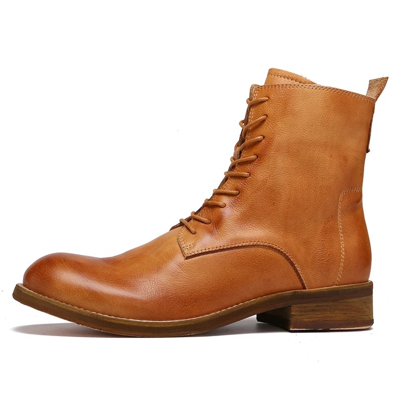 leather knight boots men, unisex ankle motorcycle boots, cowhide leather winter boots, handmade lace-up biker boots, originality design boots, full-grain leather ankle shoes, round toe retro leather boots