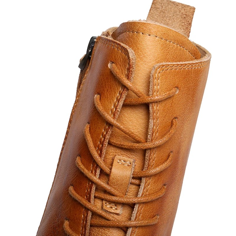 Originality™ round-toe lace-up Design Leather Knight Boots for men and women. Handmade from full-grain cowhide leather, featuring bonded insole, rubber outsole, and winter-ready design.