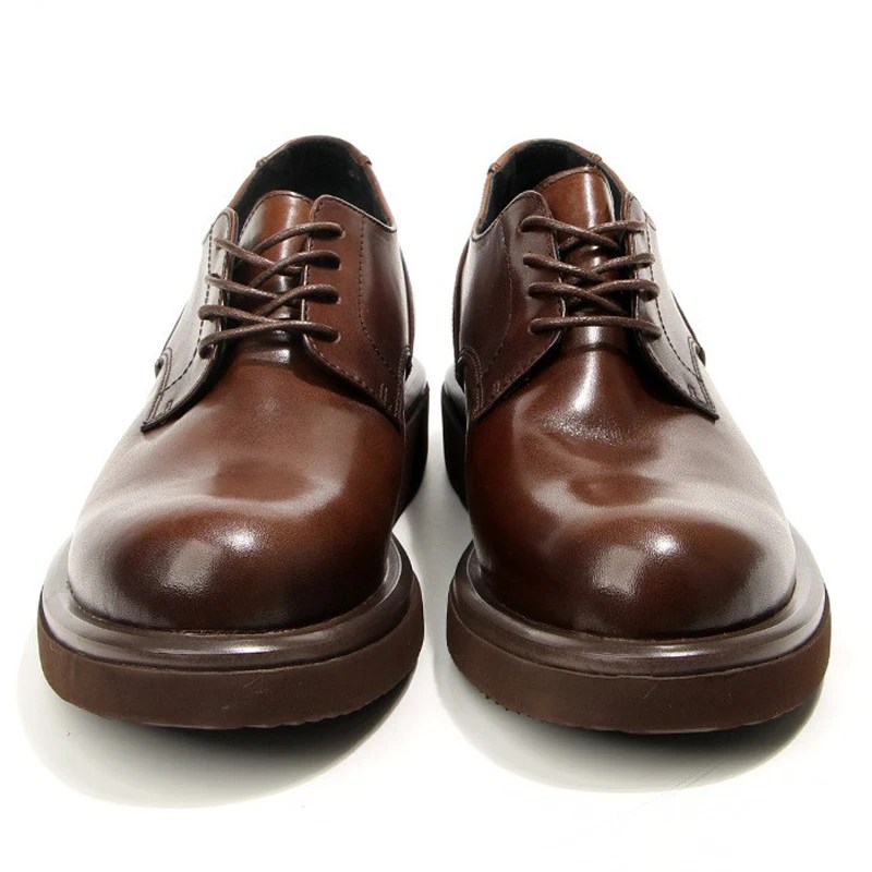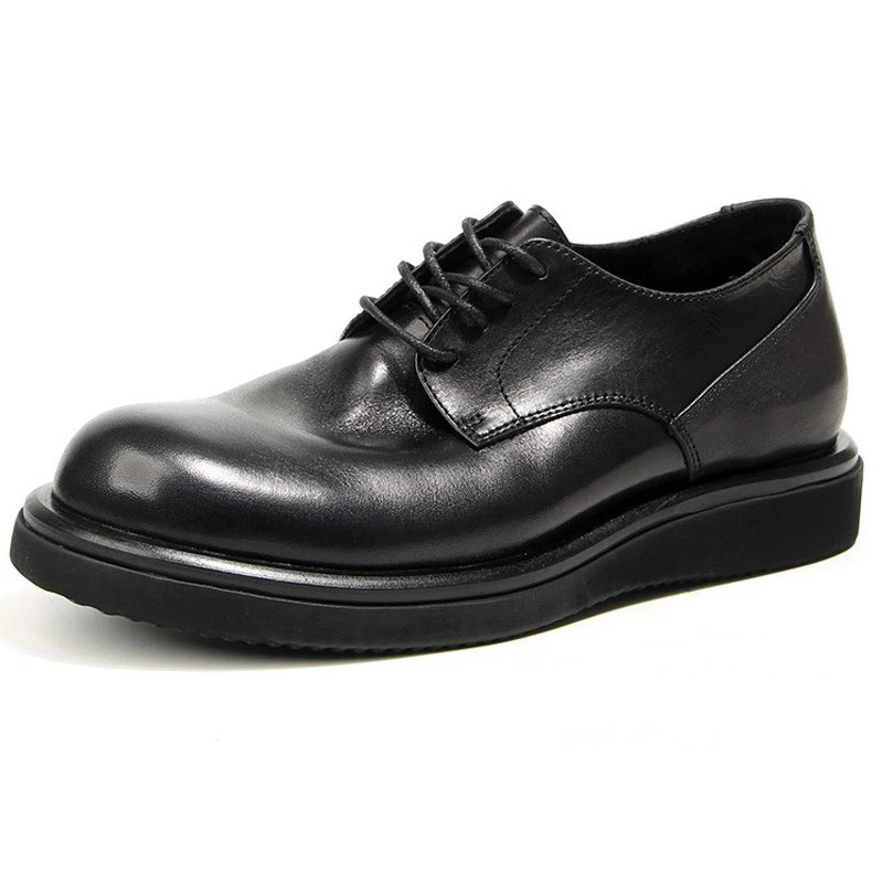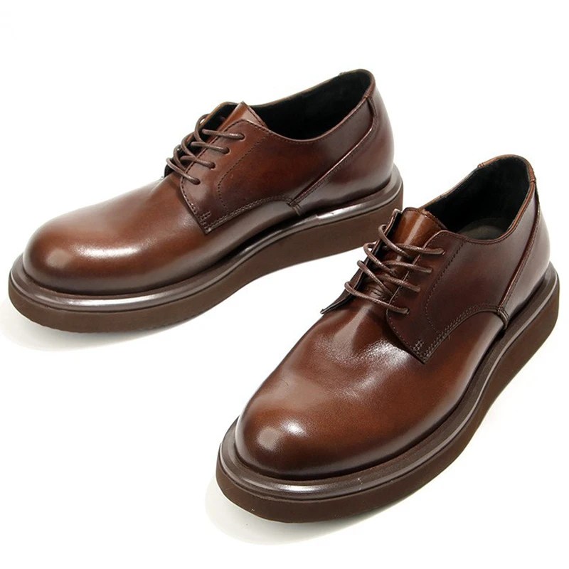 men’s leather platform shoes, handmade cowhide casual shoes, spring autumn leather footwear, pigskin insole shoes, water-resistant men’s shoes, thick sole retro casual shoes, comfort lace-up leather shoes