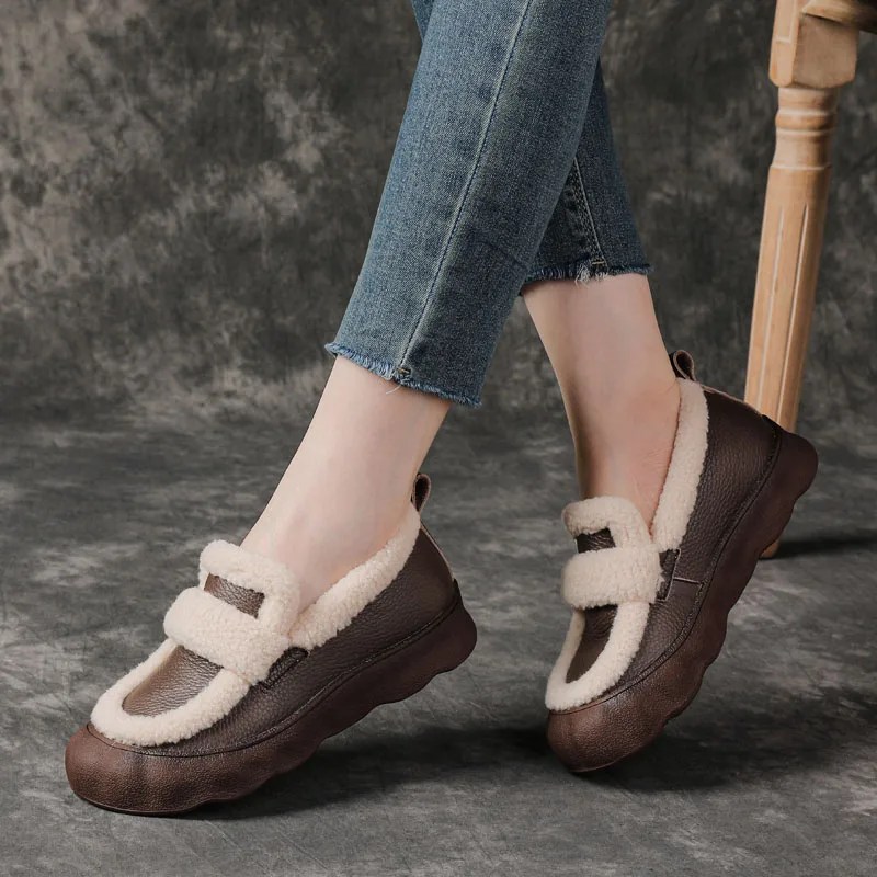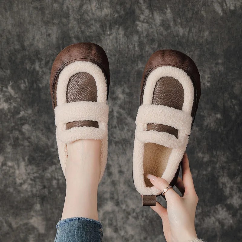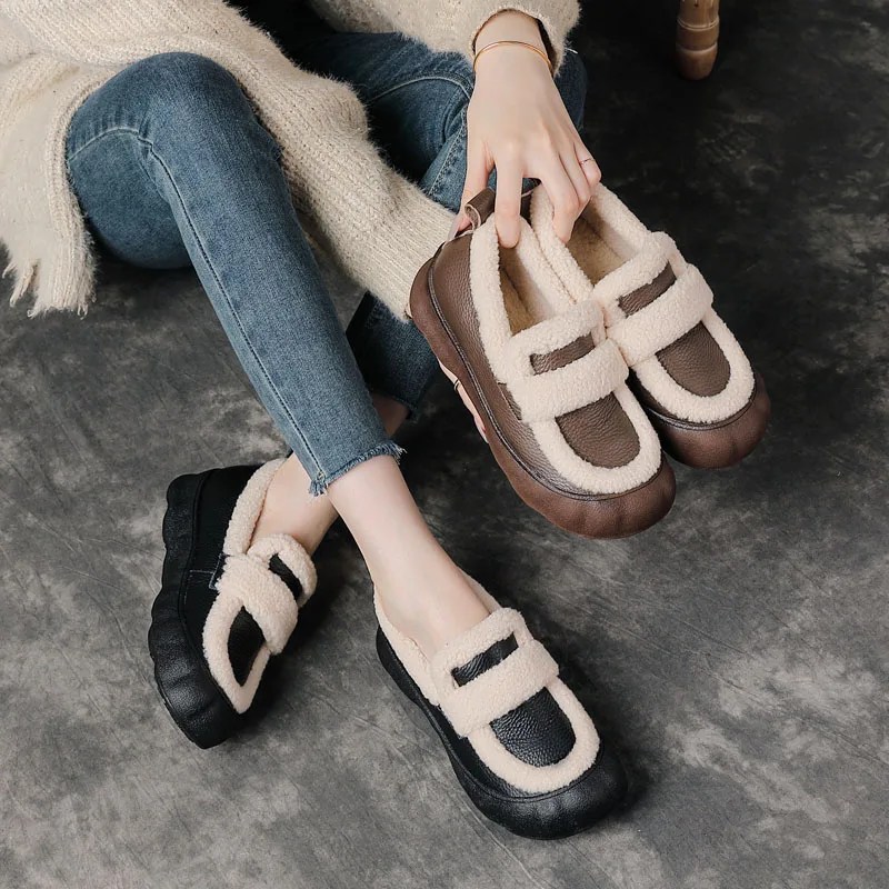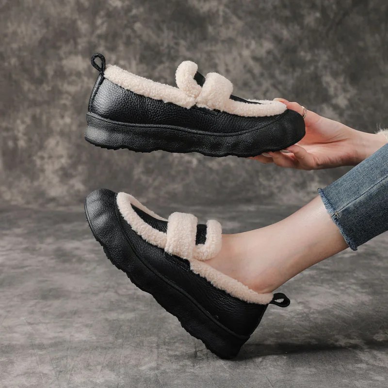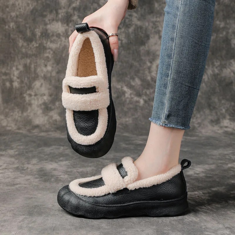 women winter leather loafers, handmade fur loafers women, genuine leather winter flats, warm slip on shoes women, plush lined loafers ladies, retro winter shoes women, casual winter footwear women, UNITYPUREMAX women shoes