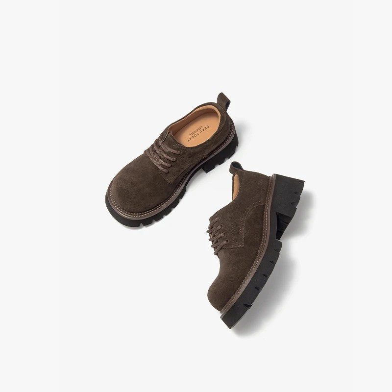 Women’s cow suede derby shoes, handmade lace-up flats, casual suede shoes women, retro derby shoes, women’s leather-lined oxfords, UNITYPUREMAX shoes.