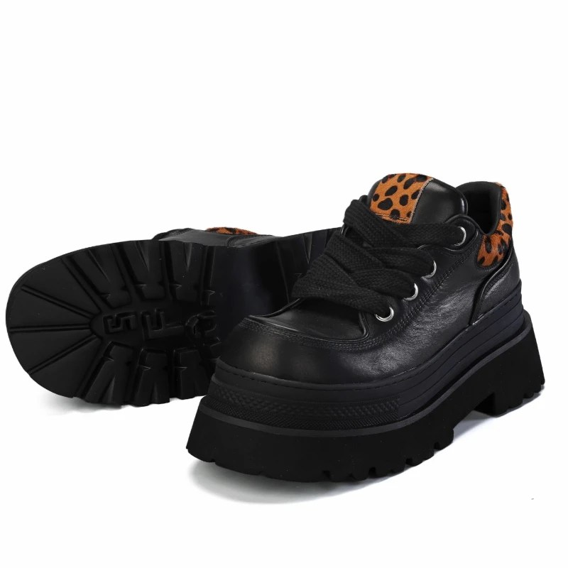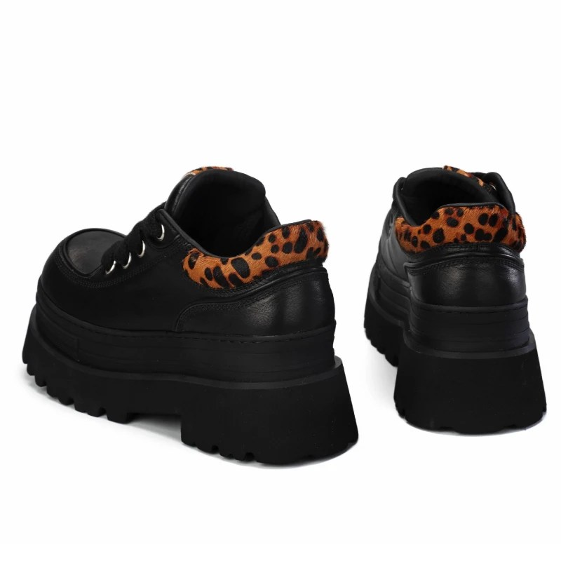 Distinctive leopard detailing sets it apart from standard casual shoes.