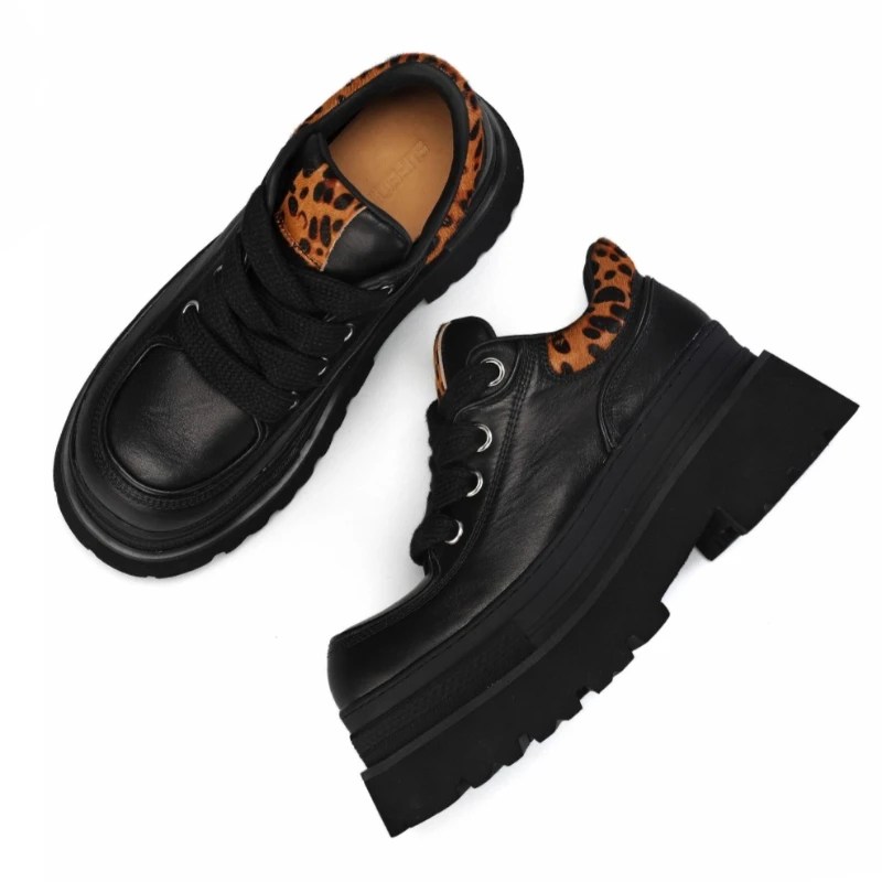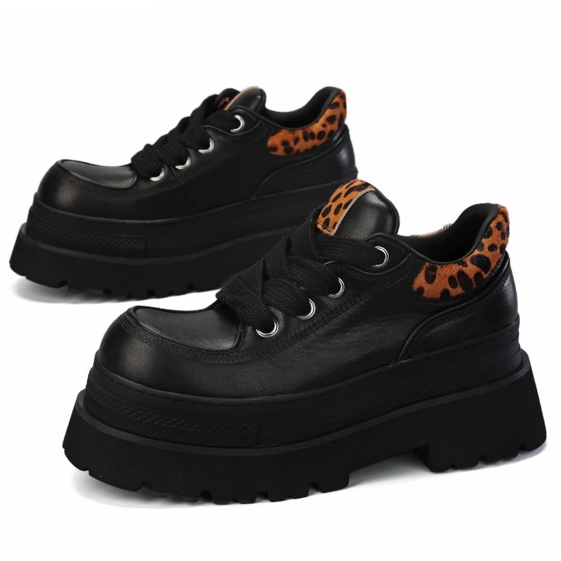 Designed for men who want statement style without sacrificing comfort, these original thick-soled Height-Increasing Leather Derby Shoes combine genuine cowhide leather with distinctive leopard stitching details. The elevated sole subtly increases height while maintaining a balanced, wearable silhouette. Breathable leather construction, a massage-comfort insole, and classic lace-up styling make these shoes ideal for spring and autumn casual wear with a confident edge.
