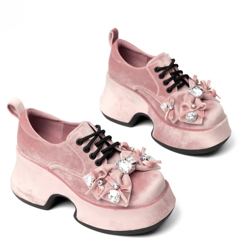 Crafted with flannel velvet uppers and genuine sheepskin insoles, every step feels plush, breathable, and supported. The charming butterfly bow accent and delicate sewing-line detailing add a feminine touch to the bold silhouette, making these shoes perfect for casual days or chic city strolls.