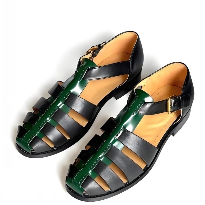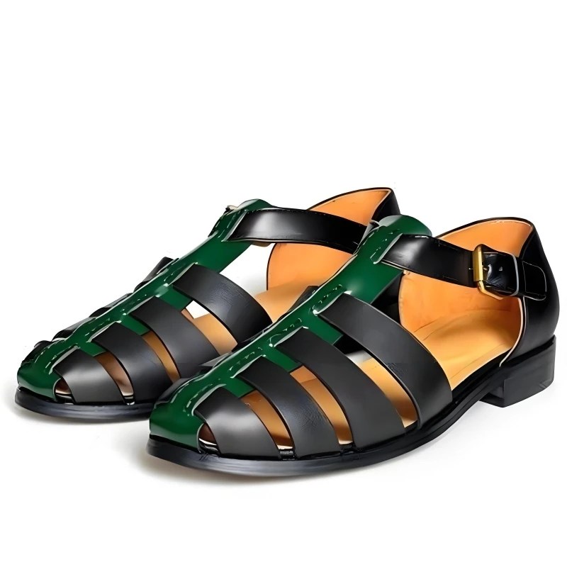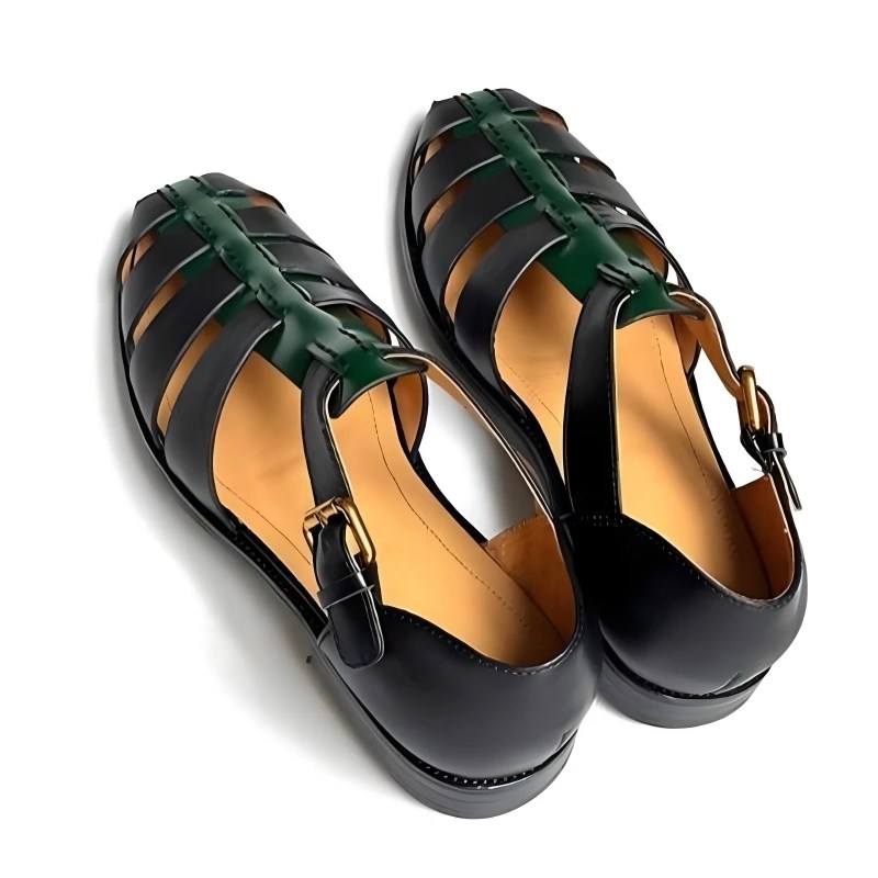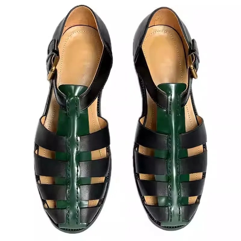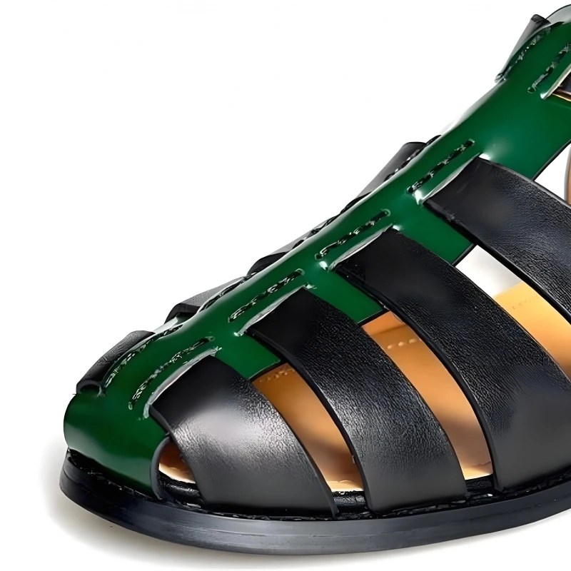 cow leather sandals men, mens summer leather sandals, retro buckle sandals men, hollow out leather sandals, handmade leather sandals men, BLACK GREEN men sandals, casual summer sandals leather, UNITYPUREMAX sandals, breathable leather sandals men, mens leisure sandals genuine leather