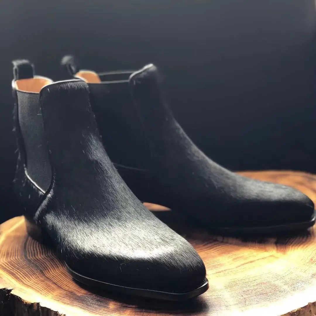 Regal Hoof™ Horsehair Chelsea Boots – Handmade Square Toe Leather Sole Ankle Boots for Men