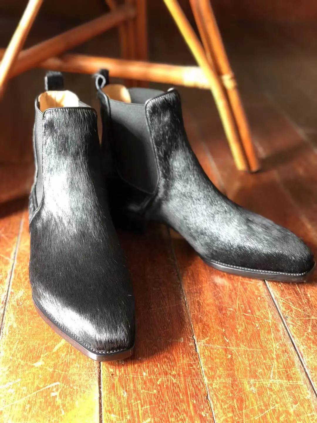 horsehair chelsea boots, handmade ankle boots men, leather sole chelsea boots, fiddle-back waist boots, British style boots, spring autumn dress boots, square toe formal boots, real horsehair men’s boots